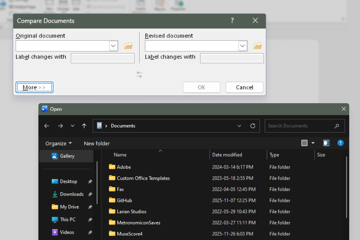 Manually configure comparisons in Word