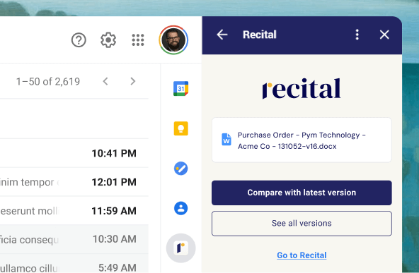 Recital automatically maintains your repository, finding and organizing new versions as they come in. Never search for a contract again.