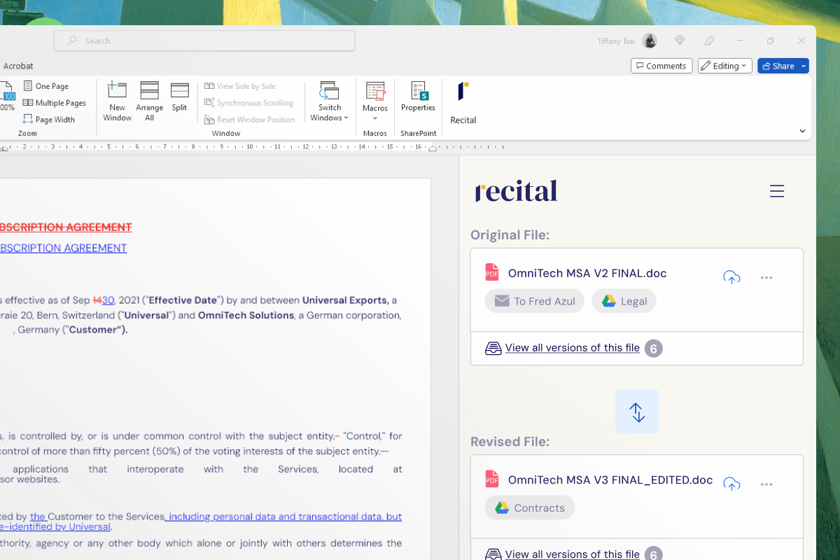 Yes. Recital's comparison feature works on Mac and Windows. Unlike traditional document comparison tools built for Windows, Recital is fully cloud-based.